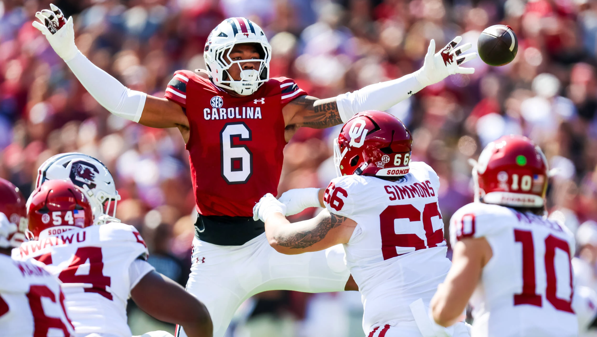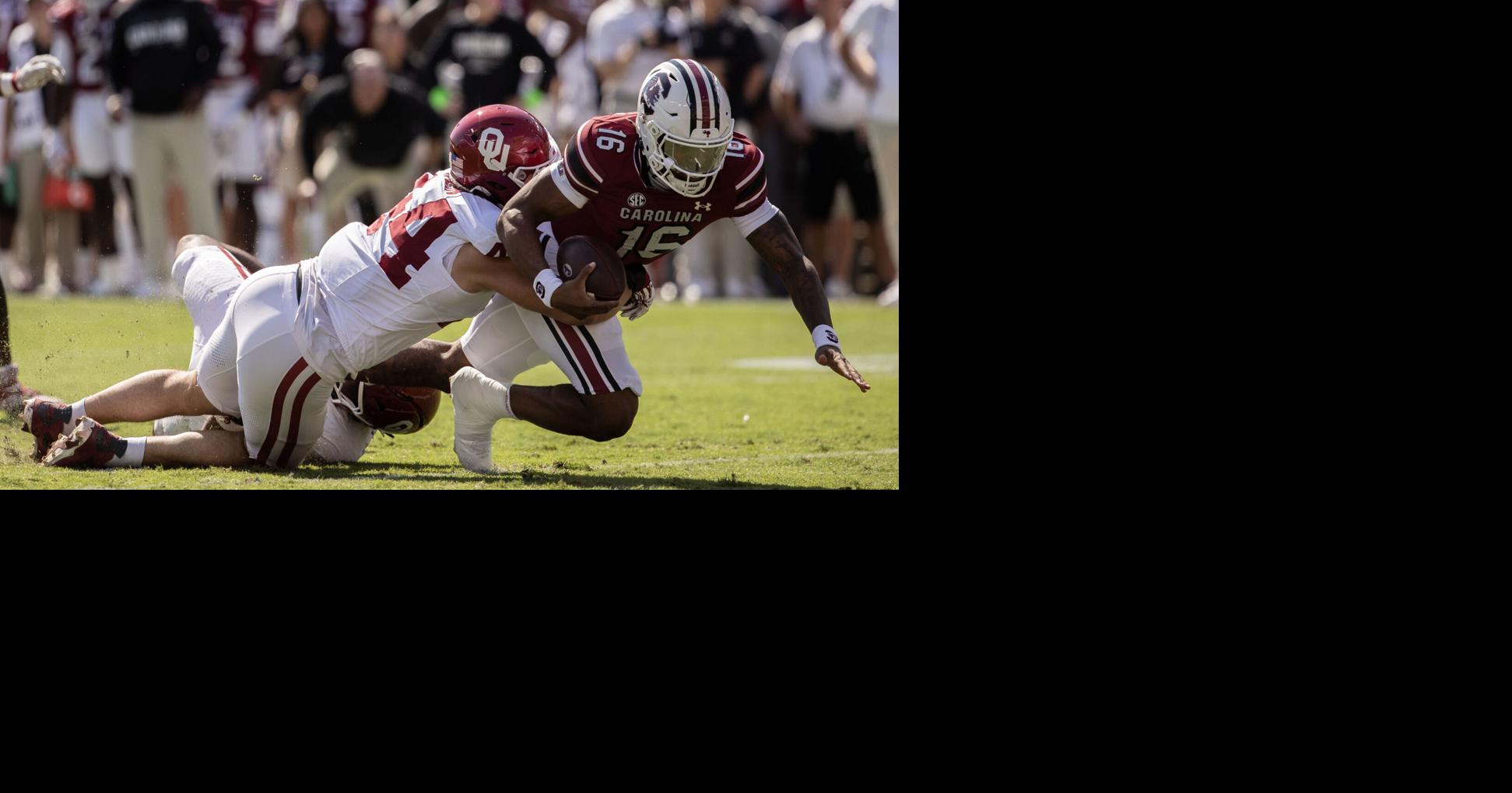 No. 14 Oklahoma sacks Sellers 6 times, stifles South Carolina 26-7
